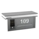 Na panelu przednim zlokalizowanym poniżej lampy umieszczony został podświetlany numer domu (maksymalna liczba znaków to 5) oraz wrzutka na listy w wymiarze 23,5 x 1,5 cm umożliwiająca odbiór listów o maksymalnym rozmiarze C5 (162 mm x 229 mm). Znajdujące się po stronie posesji drzwiczki z zamkiem szyfrowym (fabryczny kod to 000) zapewniają bezpieczeństwo korespondencji oraz wygodę użytkowania.