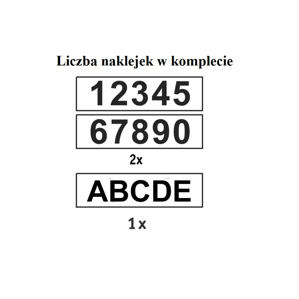 Komplet zawiera 2 zestawy samoprzylepnych cyfr oraz 1 zestaw liter od A do E.